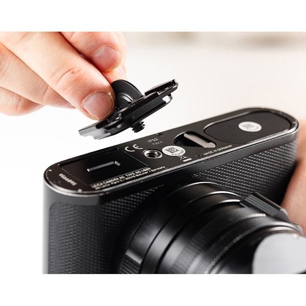 これまでにない新しいタイプの4方向アルカスイス互換プレートで、六角レンチも10円玉もDリングも不要。どんな三脚プレートよりも素早く簡単にカメラへ取り付けできます。