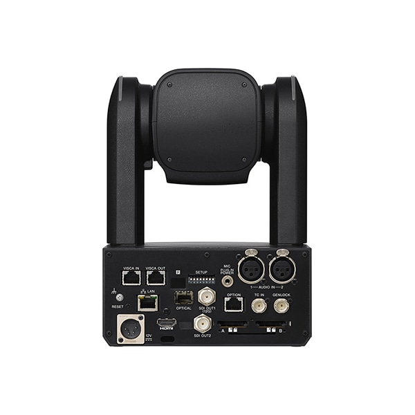 ・映像出力端子:12G-SDI/3G-SDI/光ファイバー(SFP+)・音声入力端子:XLR-3ピンx2、3.5mmステレオミニジャック