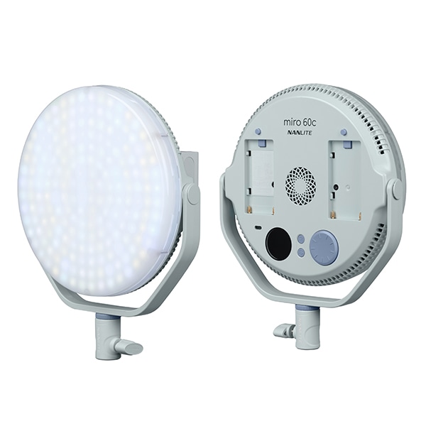 NANLITE miro 60cはコンパクトかつ多用途な円形LEDライトです。miro 60cは直径約22cmの円形デザインとマグネット式ディフューザーにより、美しく柔らかいキャッチライトを表現します。 またmiro 60cは白色のCCT(色温度)モードに加え、36000色を表現するHSIモードと多彩な照明エフェクトを備えているため、Youtube撮影、Live配信、MV、PV用の演出など様々な用途で活躍します。