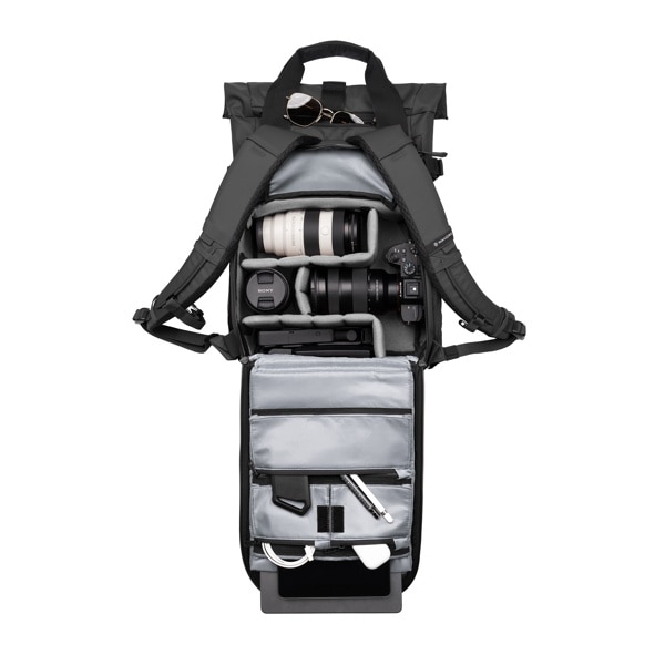 バックパネルは大きく開き、バッグをおろさずに機材にアクセスできるよう、サイドパネルが設けられています。さらにジッパープルの形状を見直し、開閉がスムーズになりました。