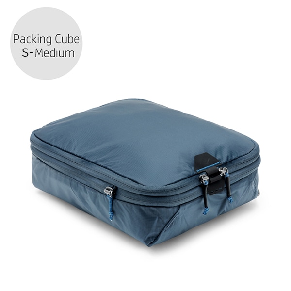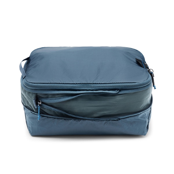 ピークデザインの「パッキングキューブ」は、衣類などの収納に適したポーチです。内部仕切りによって清潔な服と汚れた服を分けることができ、内容量に応じてサイズを調節できます。