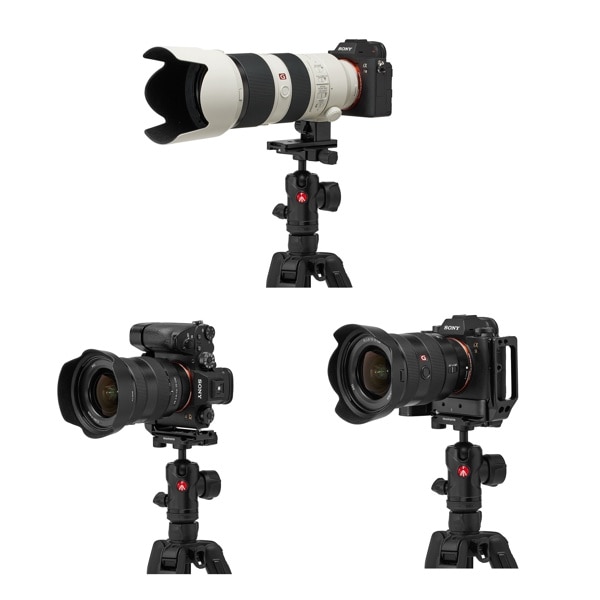 下部にレベリング機構を備えた 3 ウェイ雲台を組み合わせた三脚キットと、お好みの雲台と組み合わせるための「脚のみ」(レベリング機構はありません)をラインナップしています。