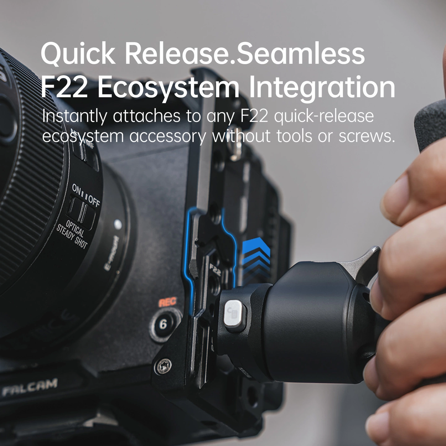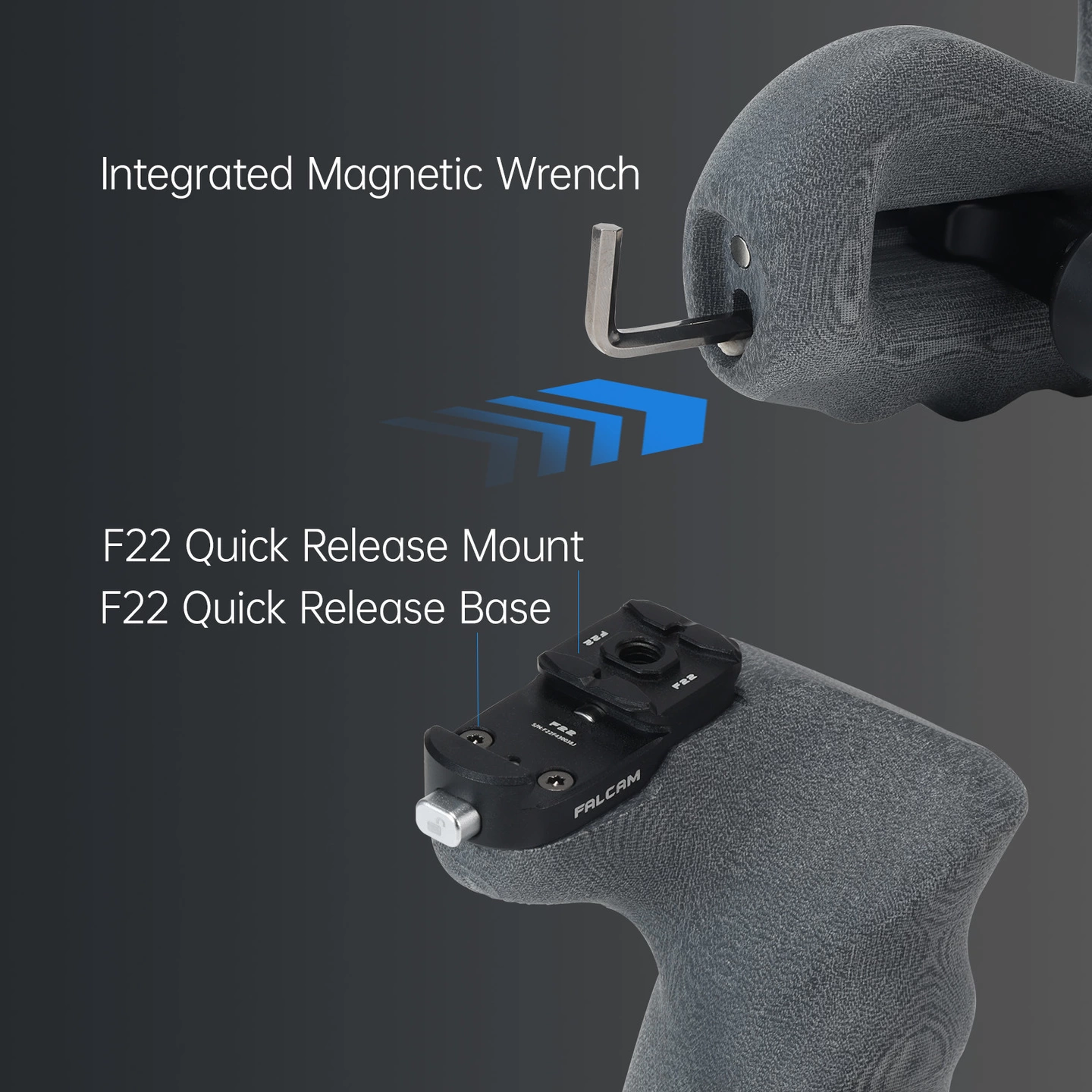 マグネット式レンチを本体に内蔵し、工具も持ち運び不要。F22クイックリリースマウントにより、スムーズな着脱と拡張性を両立します。