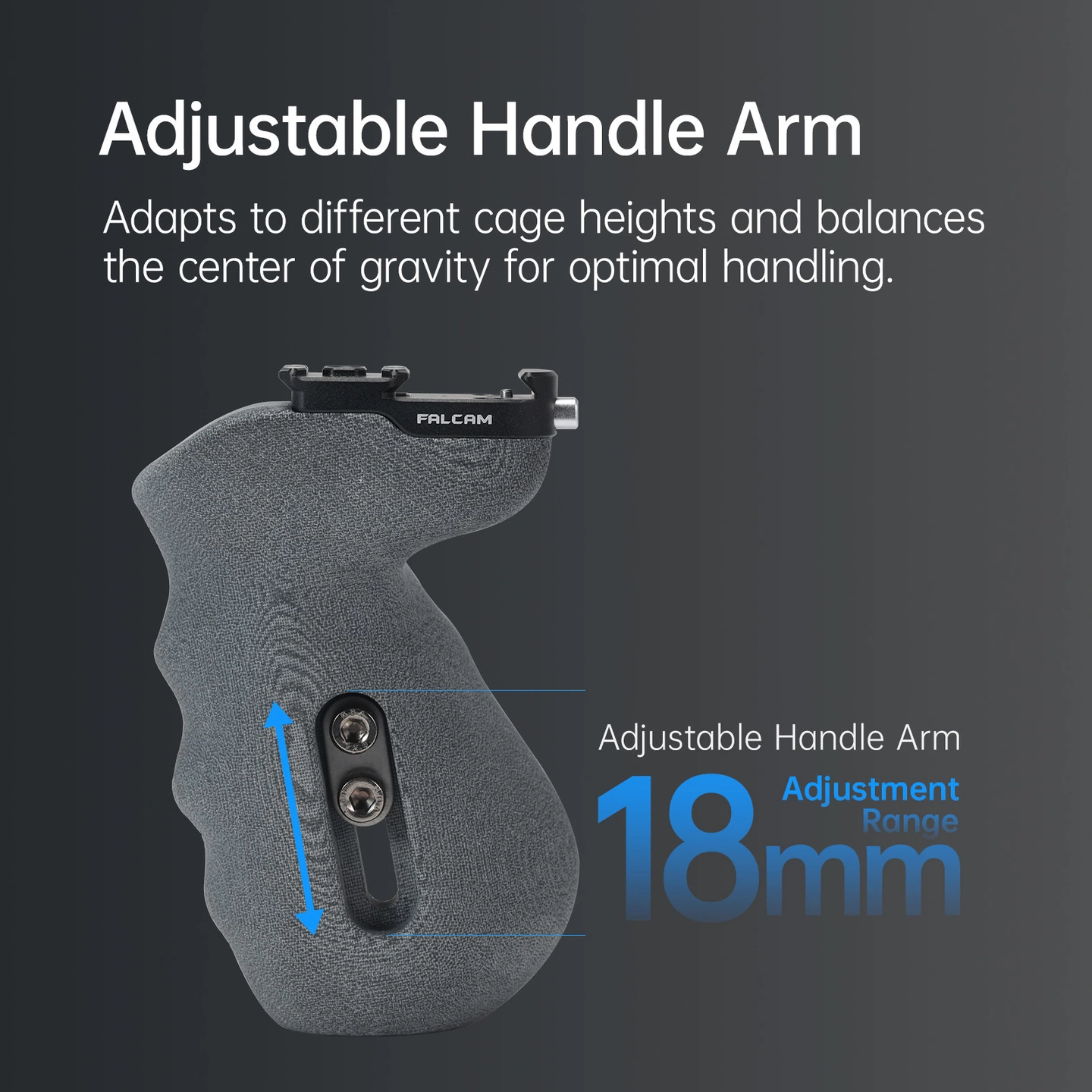 最大18mmの調整幅により、ケージの高さや機材構成に応じたポジション調整が可能。重心バランスを最適化し、安定したハンドリングを実現します。