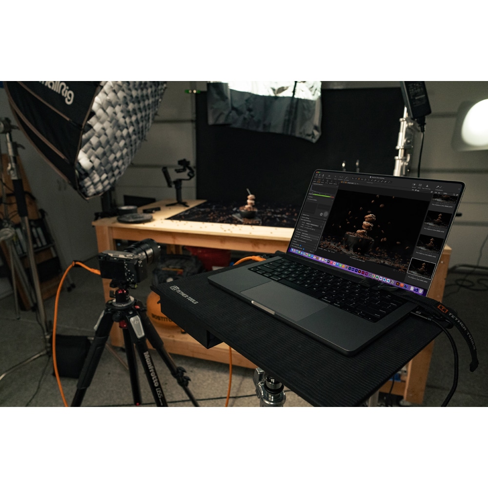 ケーブルマネジメントアイテム「テザーガード」(別売り)を使用すれば、撮影現場でのケーブルの固定やセッティングも簡単にできます。