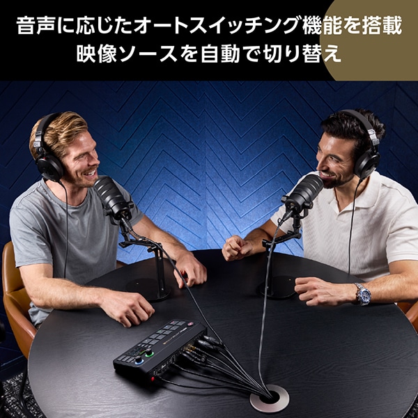 最大4つの映像ソースと9つの音声ソースの入力に対応しており、メディアプレイヤー、ダウンストリームキーヤー、シーン作成など、多機能なツールを搭載し、1080pの高画質配信が可能です。