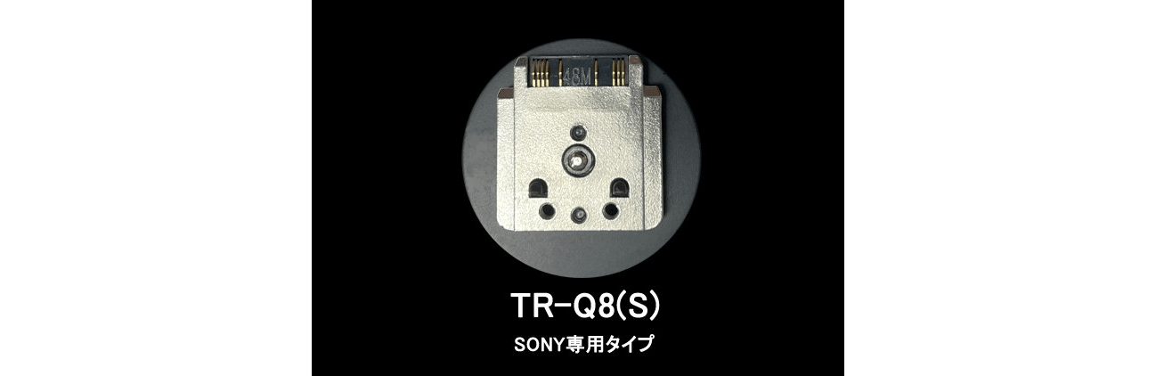 SONYカメラに対応したホットシューを装備したSONY専用ワイヤレストリガーで、TTLオートとHSSハイスピードシンクロにも対応します。別売のホットシューアダプターSを使用せずに直接SONYカメラへ取り付けることができます。※各社主要カメラ対応のインテグレーテッドホットシューを装備したワイヤレストリガー TR-Q8(型番:J423)もございます。