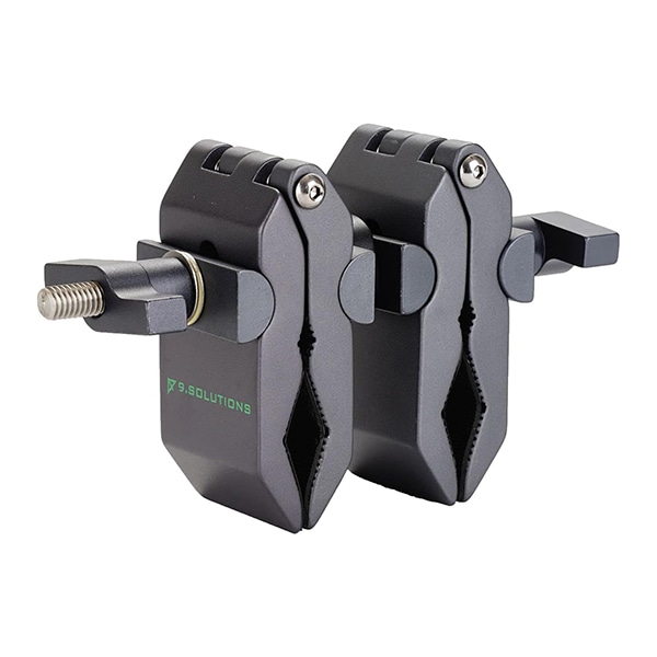 3/8インチのロッドにパイソンクランプを2つ取り付けた、ダブルクランプです。2つのクランプはそれぞれ別々にヘッド部の開閉や回転が可能なつくりとなっており、使用の幅が広がります。主な仕様