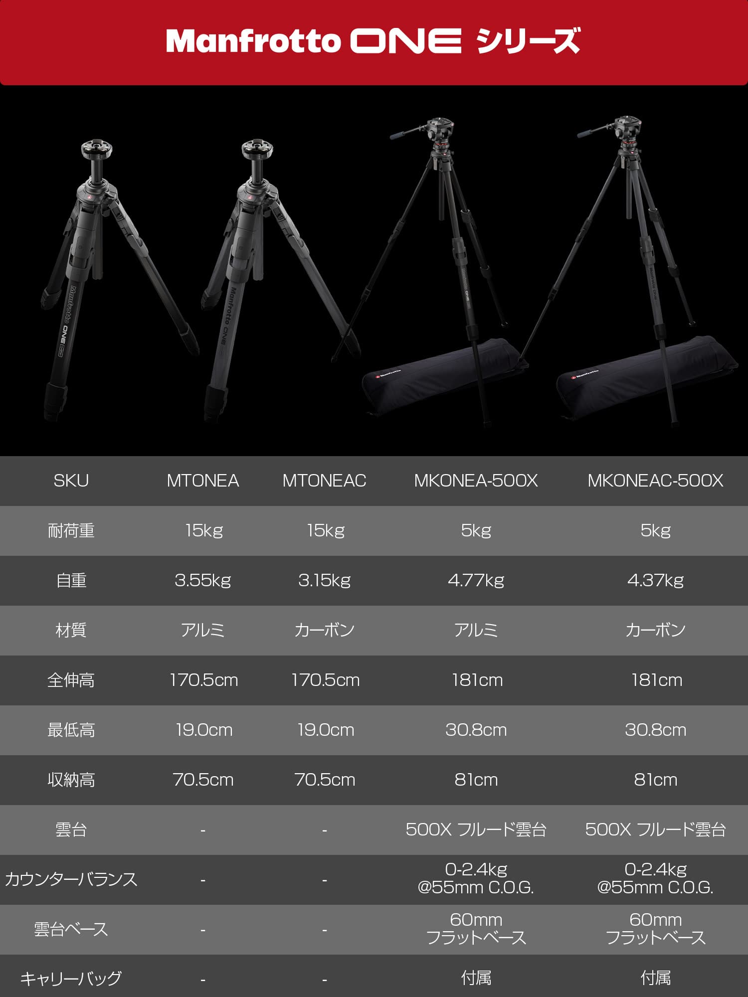 雲台+三脚キット: MKONEA-500X/MKONEC-500X