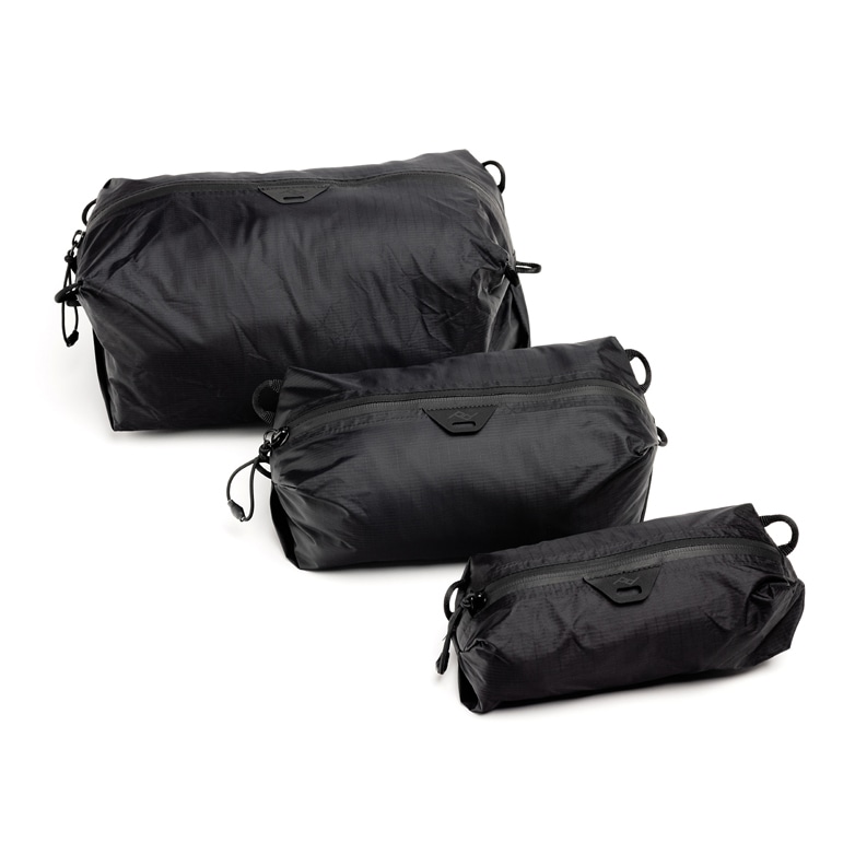 コンパクトにまとまるメッシュポーチやトラベルバッグに収納可能なカメラキューブなど、スタイルに合わせてお選びいただけます。