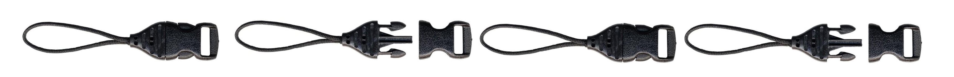 | 3/8 インチ ウェビング | ![]() 幅約 1cm のウェビングが特徴の細長いコネクターです。ストラップ取り付け部分が小さいカメラや、長いストラップをお好みの方に最適です。2個1組。 |