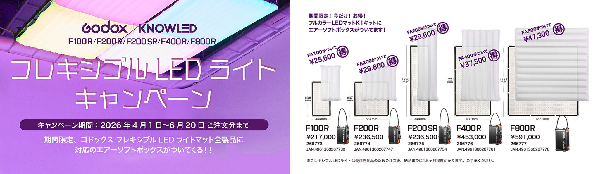 期間中、対象のフレキシブルLEDライトK1キットをご注文の方に、1機種に1個、各機種に対応したエアーソフトボックスをお付けします。