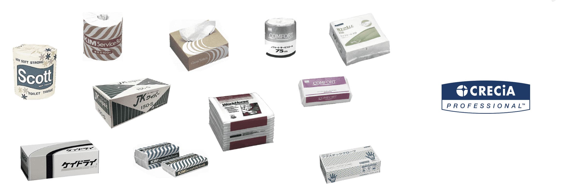 毛羽立ちや紙粉が少なく、拭き取り後も繊維が残りにくく、独自のクレープ加工により優れた拭き取り性を実現しています。