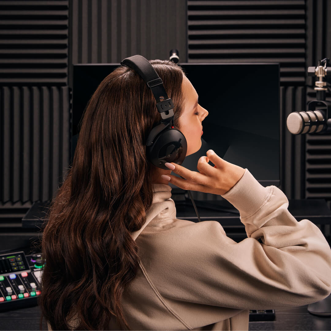ミキシング、音声・映像制作、ロケ先での録音、動画配信やゲーミングなど、あらゆるコンテンツ制作に最適なプロ仕様のオーバーイヤーヘッドホン。入念な素材選びと突き詰めた設計により、これまでにない装着感を提供します。