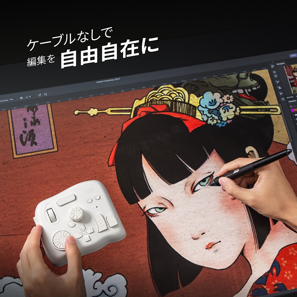 シームレスな絵描きワークフロー中断されることなく、ブラシ、キャンバス、スライダー、ツール、レイヤーを片手でコントロールする。