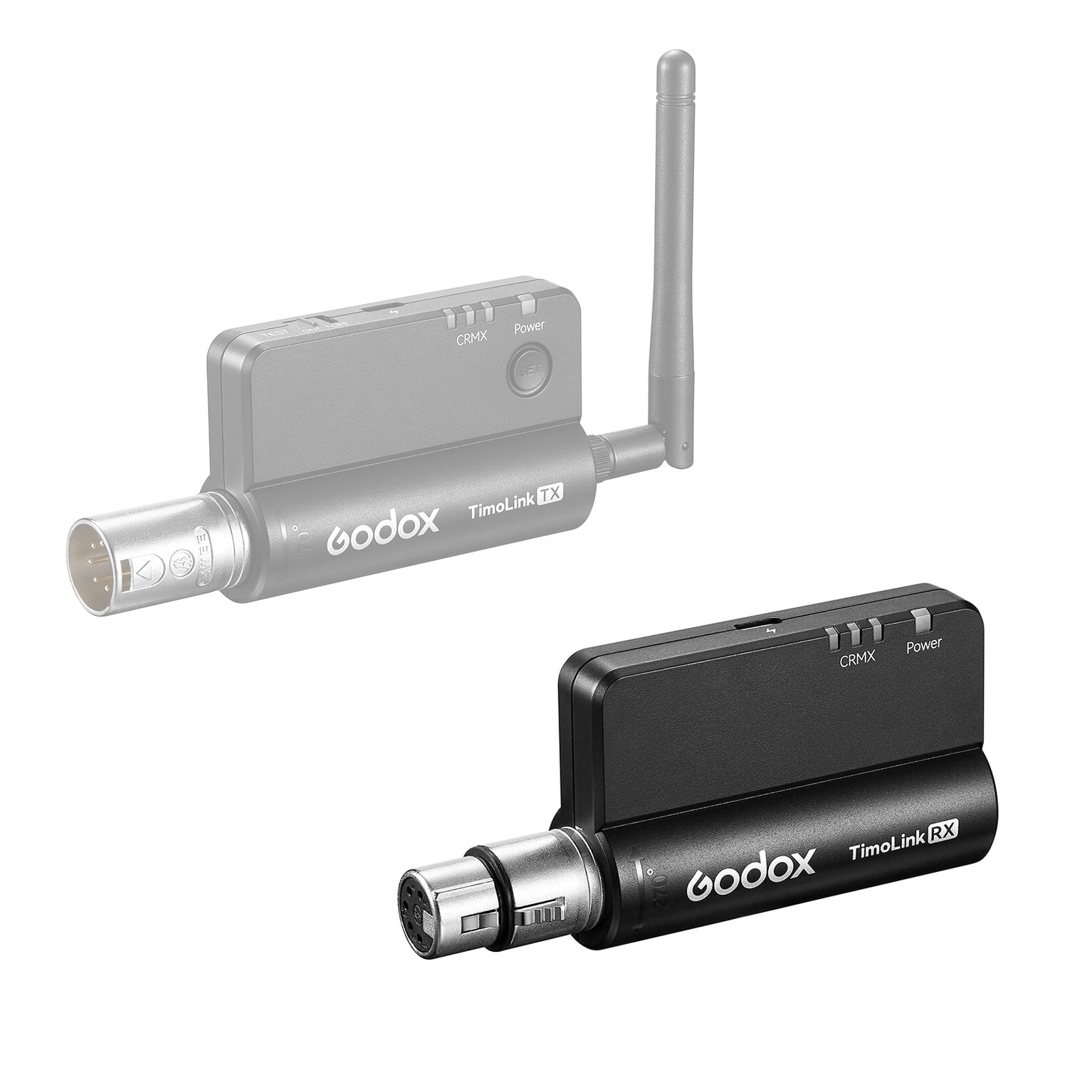 ワイヤレスDMX機能を搭載したLEDライト(GODOX MG1200BiやTPシリーズ)その他のCRMX互換機器、また受信機(TimoLink RX)と連携させることで、手軽にワイヤレスDMX制御環境を実現します。TimoLink RX