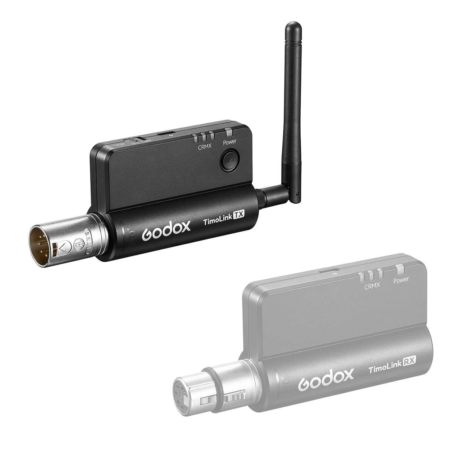 ワイヤレスDMX機能を搭載したLEDライト(GODOX MG1200BiやTPシリーズ)その他のCRMX互換機器、また受信機(TimoLink RX)と連携させることで、手軽にワイヤレスDMX制御環境を実現します。
