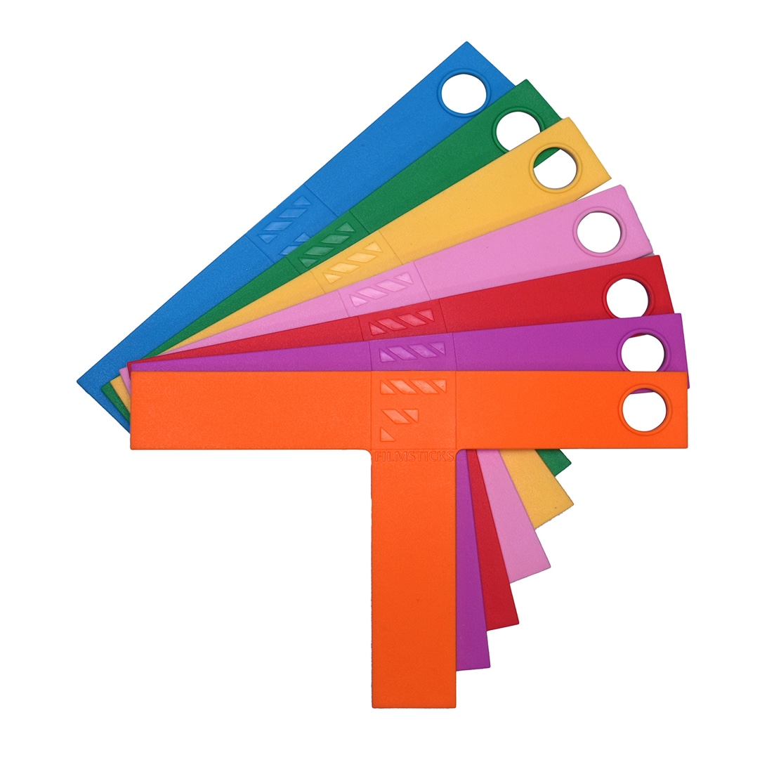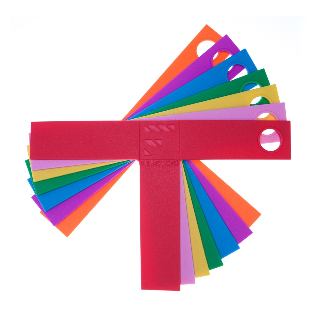 フィルムスティックスのTマーカーキットは、砂浜などテープを貼れない撮影現場でも、手軽に演者や機材の位置をマーキングできるアイテムです。