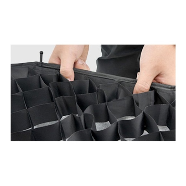 ソフトボックス前面周囲にある約5cmの溝に取り付けて使います。マジックテープ式なので着脱も簡単です。
