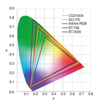 広色域表示かつDCI-P3、BT.2020を含む映像制作専用カラーモードを搭載