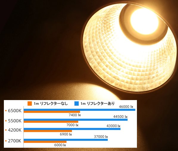 | 明るさ(リフレクターあり、5500K、1m) | 44500 lx |