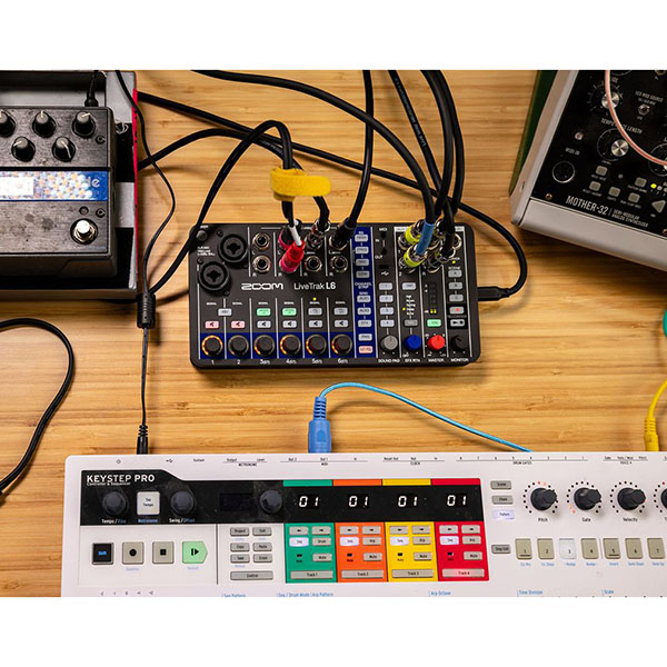 複数のシンセサイザーを同期演奏させるマシンライブ用ミキサーとしても、USBオーディオ・インターフェース機能を利用したライブ配信用ミキサーとしても、バッテリー駆動で外出先やライブステージなど、あらゆるシーンにフィットします。