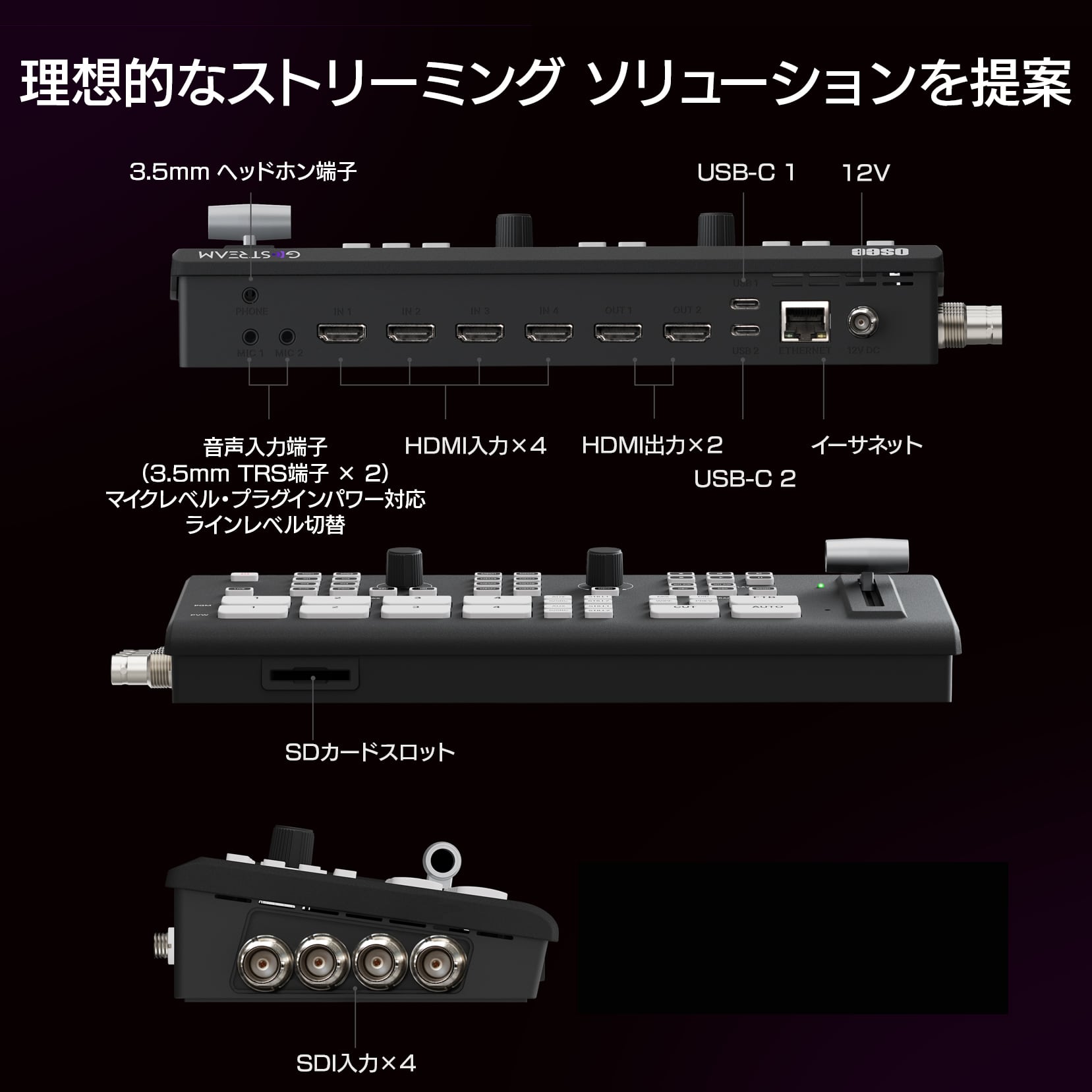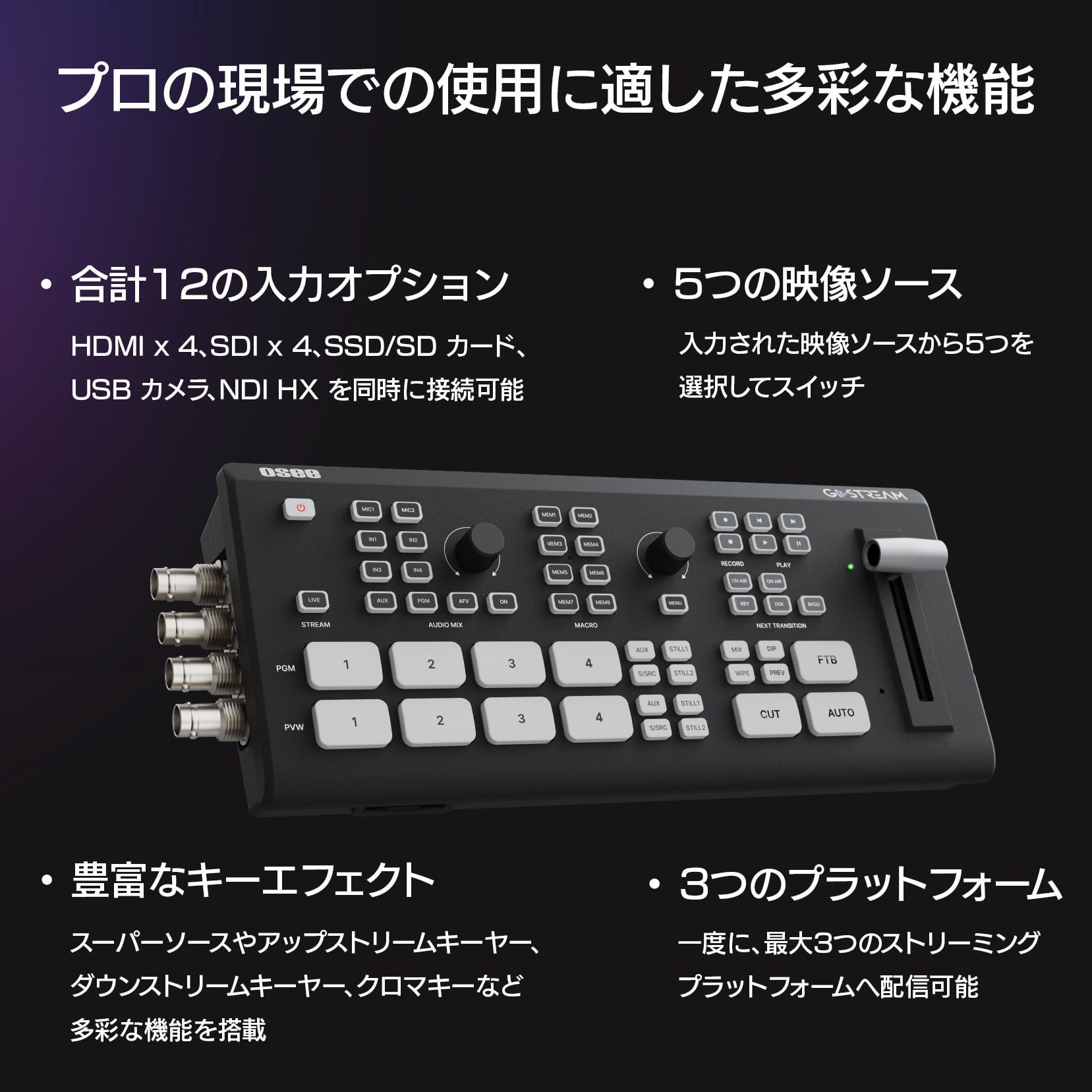 「ゴーストリームデッキ」の基本的な機能に加えて、SDI入力、NDI HXも使用可能で、ライセンスも付属します。プロの現場での使用に適した多彩な機能と信頼性を備えており、コンパクトなデザインで携帯性も抜群。映像制作のプロフェッショナルや映像クリエイターの方にとって理想的なツールです。【充実した入力オプション】