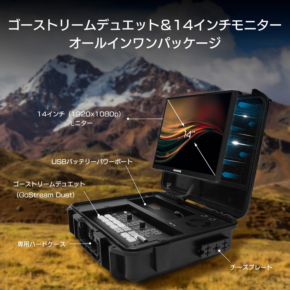 ハードケースに「ゴーストリームデュエット」と14インチモニターがセットされた、オールインワンパッケージです。