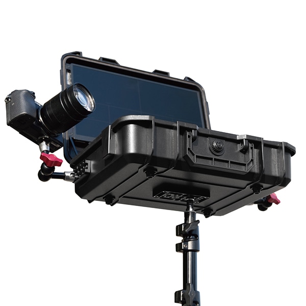 ハードケース底面のチーズプレートでライトスタンドや三脚などにしっかり設置でき、屋内でも屋外でも安定した操作ができます。両側面にあるプレートにはピボットアームを取り付ける等の拡張ができ、現場に合わせてさまざまなカスタマイズが可能です。| 価格 | オープンプライス |