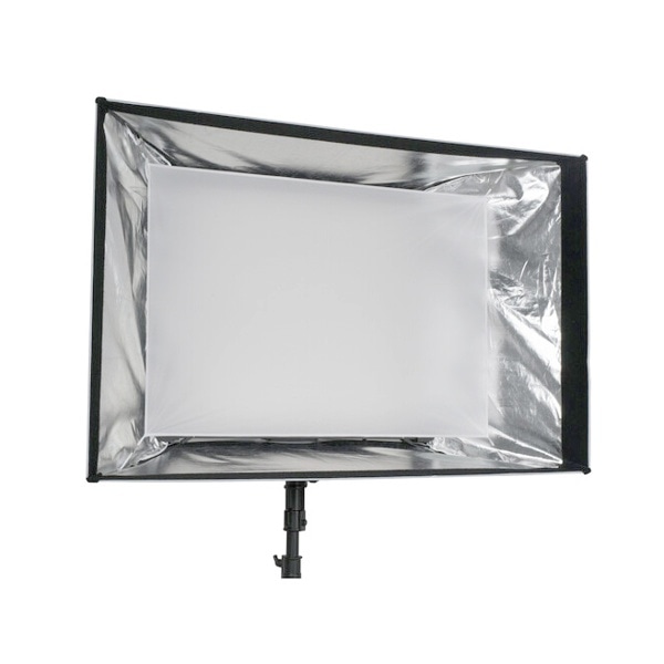 NanluxのDyno 1200C LED ライト用 長方形ソフトボックスは、出力を柔らかくし、ライトの明るい LED のコントラストを下げます。
