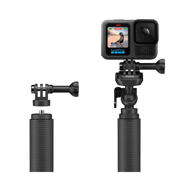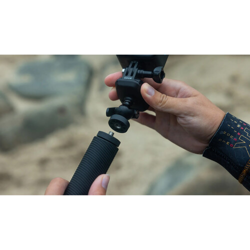 一般的な1/4-20マウント用ネジ付きの三脚、一脚、カメラアクセサリーにGoProを装着できるアダプターのセット。フィンガーアダプターでGoProを三脚に直接マウントできるほか、ボールジョイントアダプターを使用すれば、三脚に装着したカメラの傾きや回転を自由に調節して多彩なアングルを追求できます。