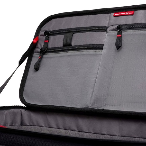 シネローダーMは、大きなトップハンドルと丈夫なサイドハンドル、取り外しができるショルダー ストラップ、そしてローラーバッグ等に固定できるトロリーループと、さまざまなキャリングスタイルに対応できるフレキシビリティーを備えています。