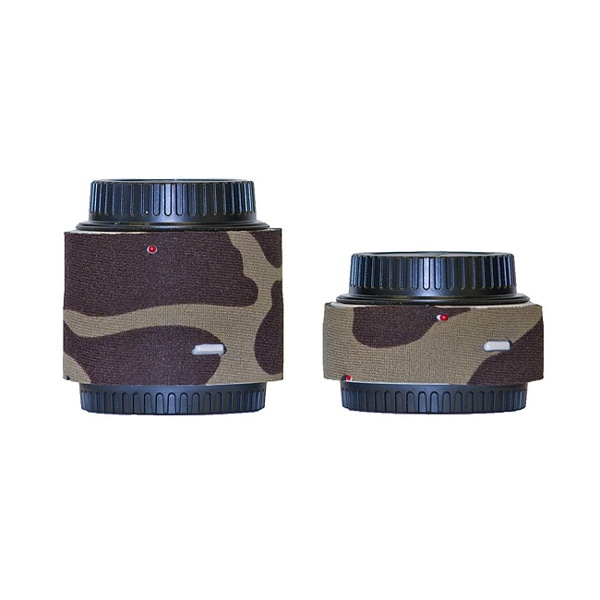 CanonEF1.4XIII & EF2xIIIエクステンダー用 アメリカ・ニュージャージー州でひとつひとつ手作りされる、望遠レンズの鏡筒をキズから守る保護カバーです。これは単なるカバーではなく、使用感を損なわない薄目約2mm厚のネオプレーン生地を使用し、裏には滑り止め加工が施されており、開きの大きな花形フードにも食い付きが良いのが特徴です。迷彩や冬季迷彩などの中からお好みと用途に合わせてお選び下さい。Canonのテレコンバーター用は1.4x用と2x用の2種セットになっています。 カラー:フォレストグリーンカモ・定番的な緑・黒・濃茶・オリーブの4色迷彩です。