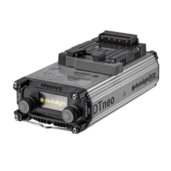 dedolight neo シリーズ ライト ヘッド DLED2N、DLED3N、DLED4N、DLED7N、DLED9N (バイカラー、デイライト、タングステン、UV、IR) に電力を供給するバッテリー電源。接続されたライトヘッドの自動検知。