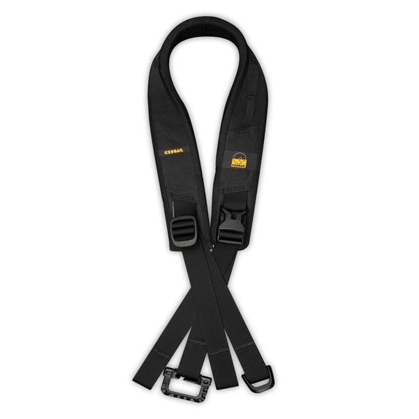 ストラップの長さは約70-140cm まで調節可能で、分厚くクッション性のある生地を採用。
