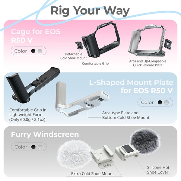 ? 統合型フルケージ:?EOS R50 V 専用で、堅牢な保護と多彩な拡張性の両方を提供します。