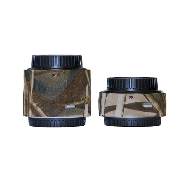 CanonEF1.4XIII & EF2xIIIエクステンダー用 アメリカ・ニュージャージー州でひとつひとつ手作りされる、望遠レンズの鏡筒をキズから守る保護カバーです。これは単なるカバーではなく、使用感を損なわない薄目約2mm厚のネオプレーン生地を使用し、裏には滑り止め加工が施されており、開きの大きな花形フードにも食い付きが良いのが特徴です。迷彩や冬季迷彩などの中からお好みと用途に合わせてお選び下さい。Canonのテレコンバーター用は1.4x用と2x用の2種セットになっています。 カラー:リアルツリー(MAX4)・・・枯草と倒木をリアルに再現した多色カモフラージュで、春先から秋口にかけて広範囲にお使い頂けます。