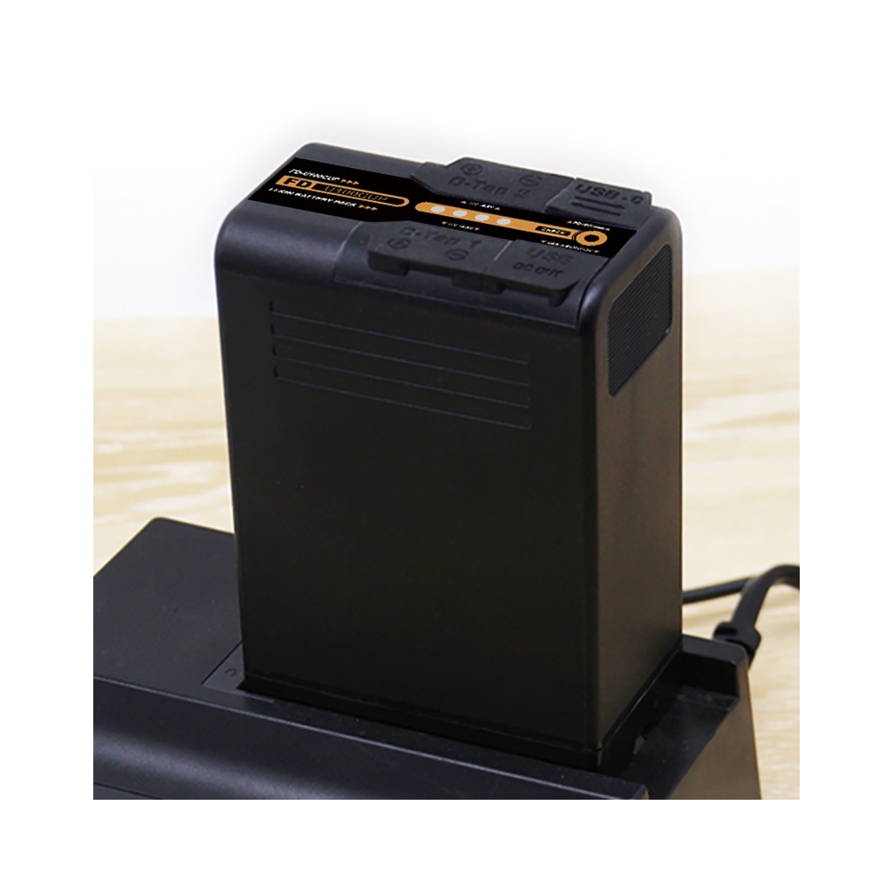 パナソニック製グレード A セルを搭載した、14.8V/6700mAh の大容量 SONY(BP-U)互換 DV バッテリーです。USB-A、USB-C、D-TAP のインターフェイスが装備されていますので、同時に複数機器への給電が可能です。PD プロトコルをサポート。