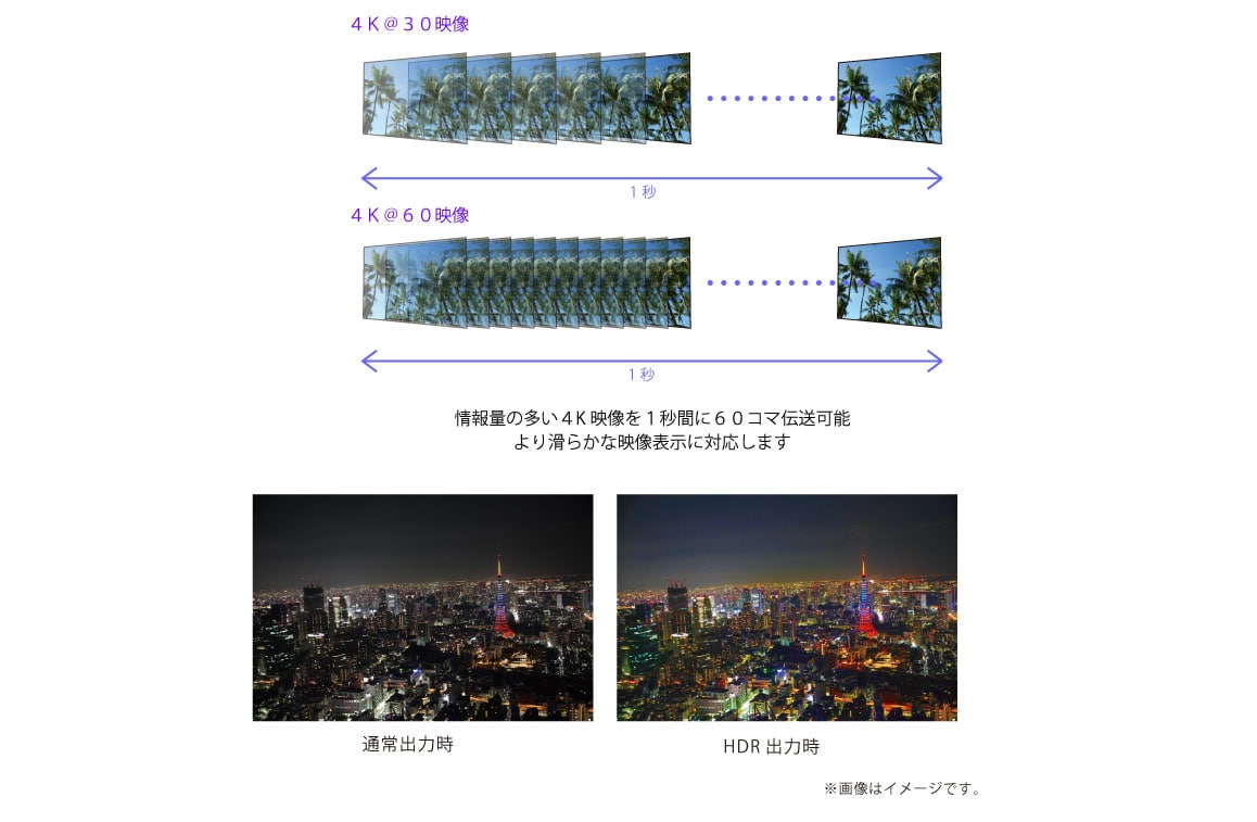 最大4K UHD@60 4:4:4 (最大伝送速度18Gbps)対応