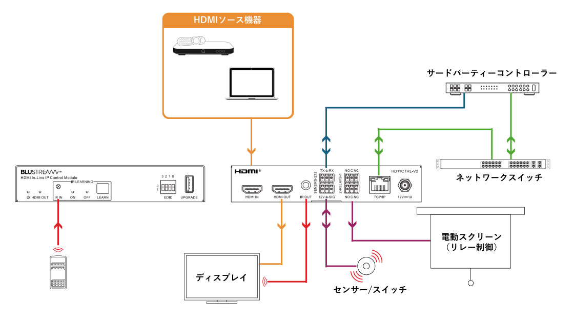 | オートメーション出力信号 | 7種類(IR、リレー1、リレー2、HDMI CEC IN、HDMI CEC OUT、RS-232、TCP/IP経由コマンドから自由に選べる) | 6種類(IR、リレー1、リレー2、HDMI CEC IN、HDMI CEC OUT、RS-232各1種類固定) |