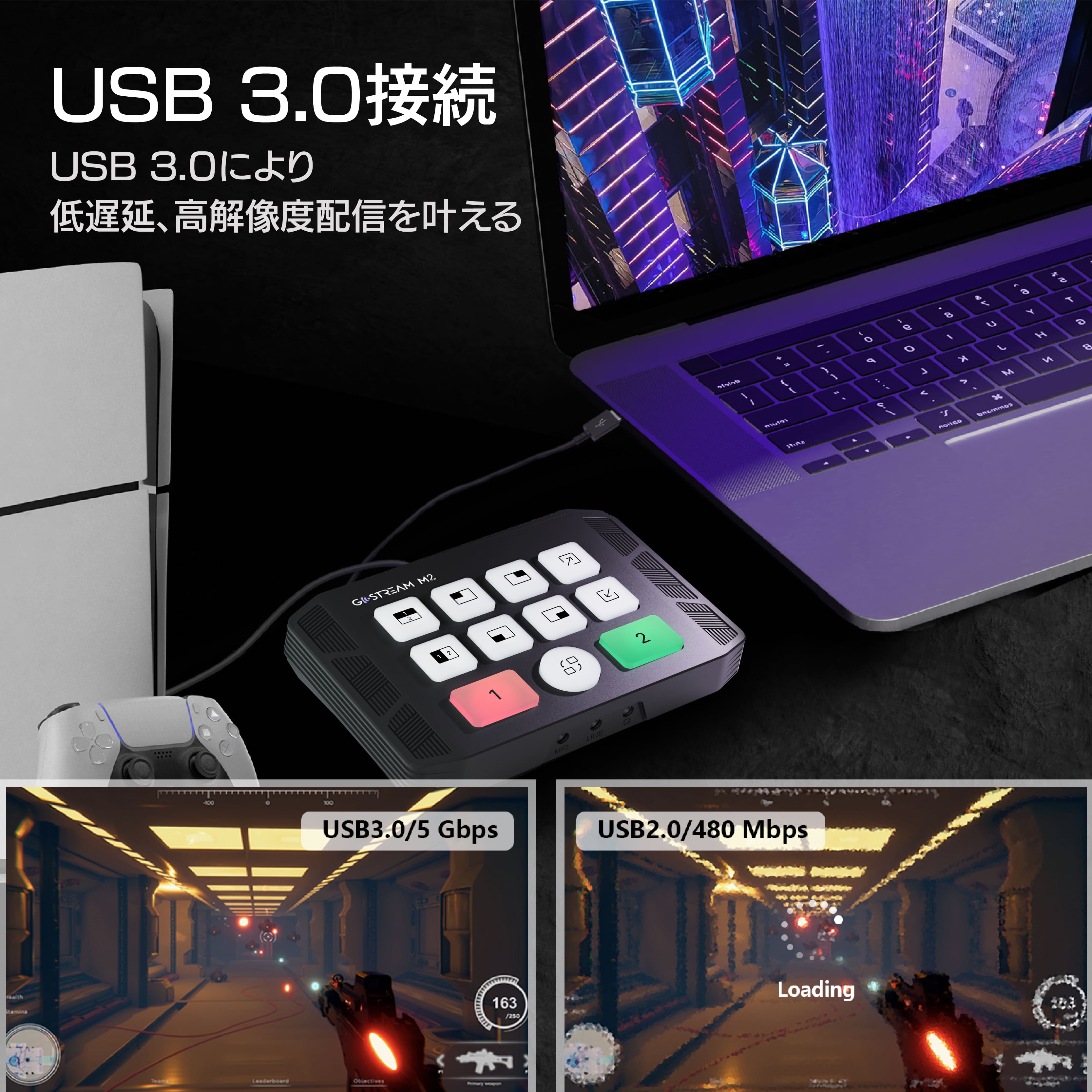 2系統の4K60 HDMI入力と1080p60出力をサポートし、ライブストリーミングやビデオ会議、企業によるウェビナーなどに最適です。また、低遅延、高解像度出力を可能にするUSB3.0接続により、ゲーム配信やゲーム実況にも使えます。