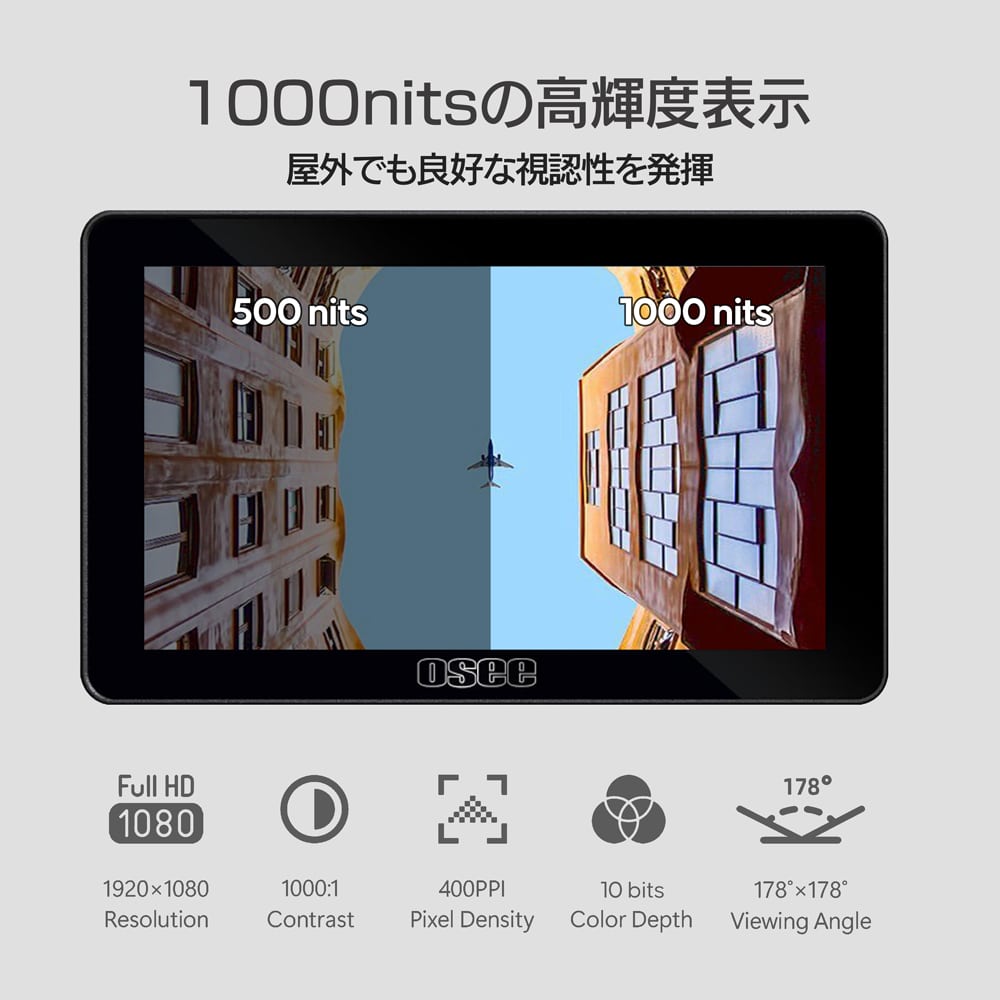 低反射、指紋防止コーティング、1000nitsの高輝度バックライトユニットを備えたパネルを採用しています。10bitカラー、1000:1 のコントラスト比、D65色温度を提供し、冷却ファンも不要です。屋外撮影でも鮮明な画像を表示し、あらゆる状況でクリエイティブな可能性を引き出します。
