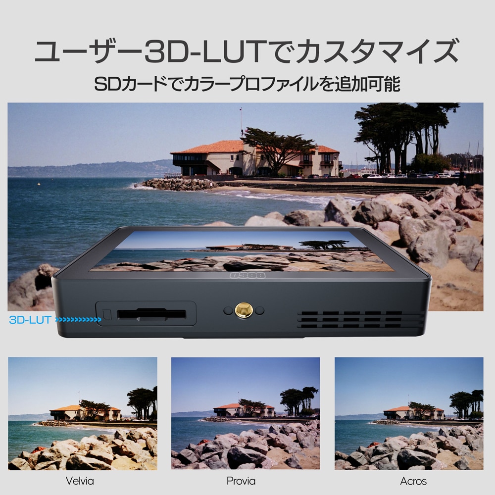 | その他入出力端子 | SDカードスロット(LUT/ファームウェアアップデート用) 3.5mm(オーディオ出力用) 2.5mm(キャリブレーションプローブ用) |