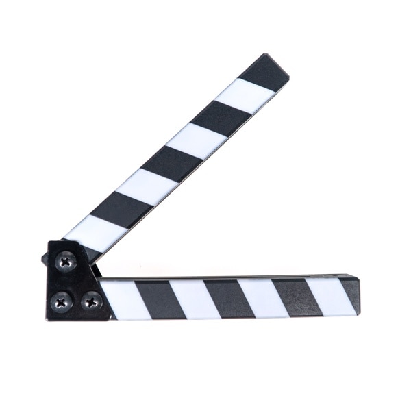 映画制作の現場で活躍する、軽量ながら頑丈なクラッパーボードです。