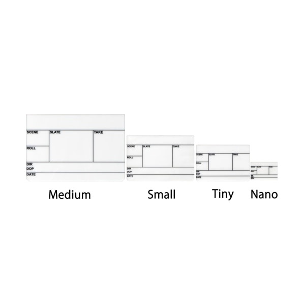| クラッパーボード | H19 × W28cm | H12.9 × W19cm | H10.2 × W15cm | H4.96 × W7.5cm |