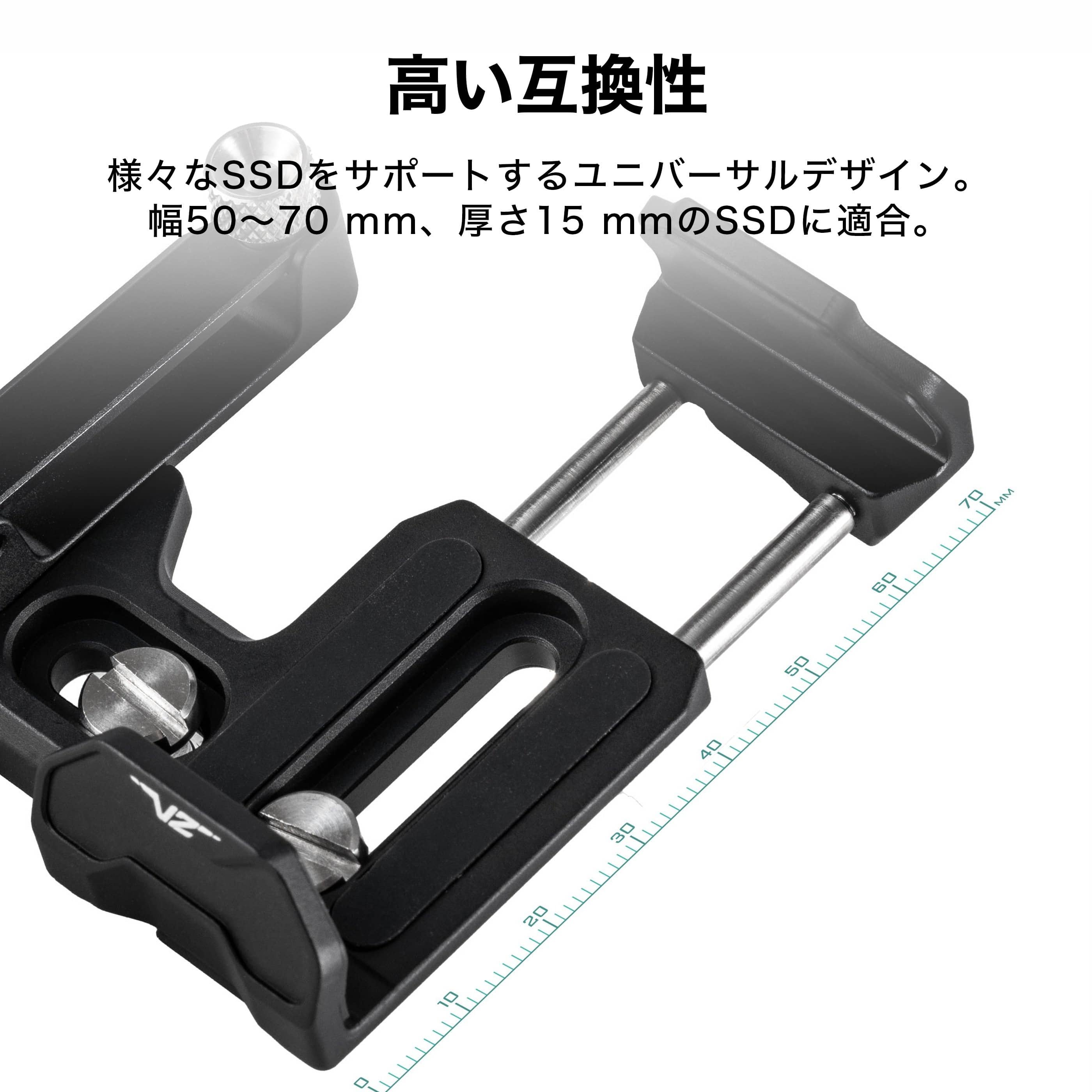 幅50~70mm、厚さ15mmまでのSSDと互換性があり、多くのSSDに対応しています。