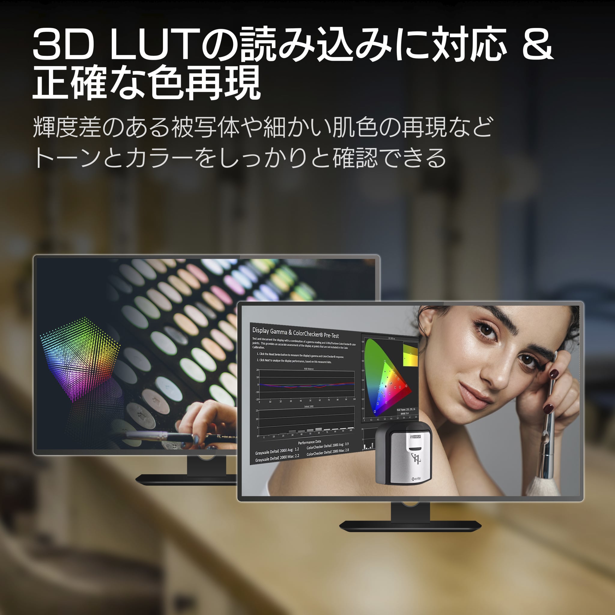 正確な3D-LUTの色再現により、細かい肌色やHDR映像を表示。22bitの内部処理によって、最大18ストップのダイナミックレンジを表現できます。3D-LUTは、SDカードから読み込み可能です。