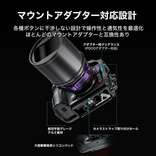 ・パナソニック LUMIX S1RII用フルカメラケージ・LUMIX S5II/S5IIX/G9IIとも互換性あり