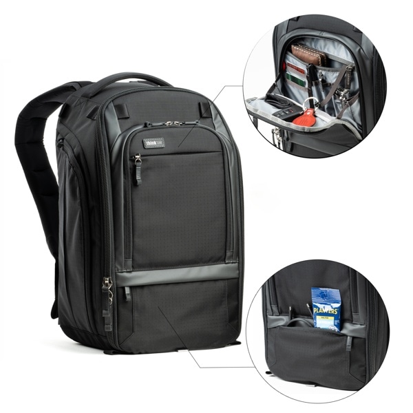 アクセスしやすい大きなフロントポケットは、ストリートウォーカーシリーズよりも容量を増やし、小物の収納に便利なオーガナイザーやジッパーポケット、さらにキーランヤードを備えています。ほかにも、内側にマイクロファイバー生地を使用したスマートフォンの収納にぴったりなバッグ前面のジッパーポケットに、小~中型の三脚や水筒を収納できる両サイドのジッパー付きポケット、パスポートなど貴重品の収納に適したバッグ背面の隠しポケットなどを装備しています。