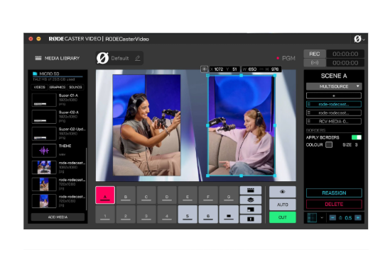 たとえば2人の対談中に引きのカメラへ切り替えるなど、より自然でスムーズなスイッチングを実現します。